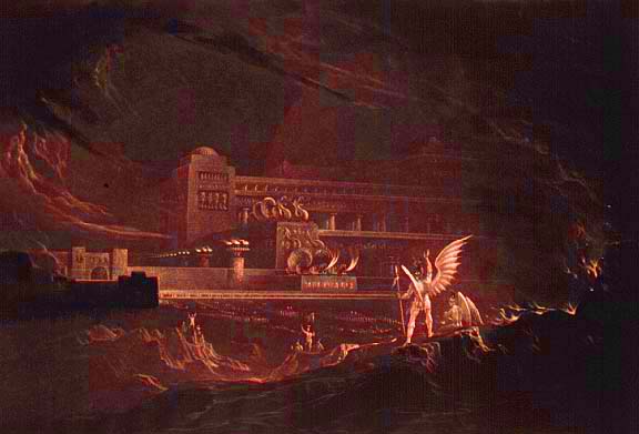 यहाँ जोन मार्टिन द्वारा "Paradise Lost" बाट सैतनको राजमहलको चित्र छ।